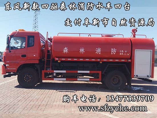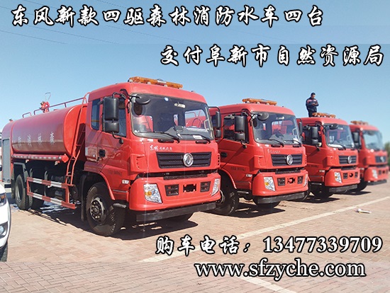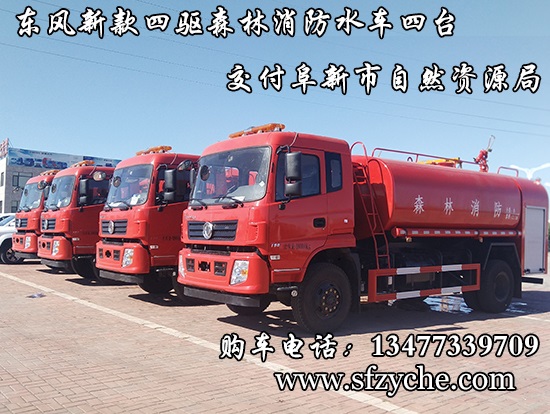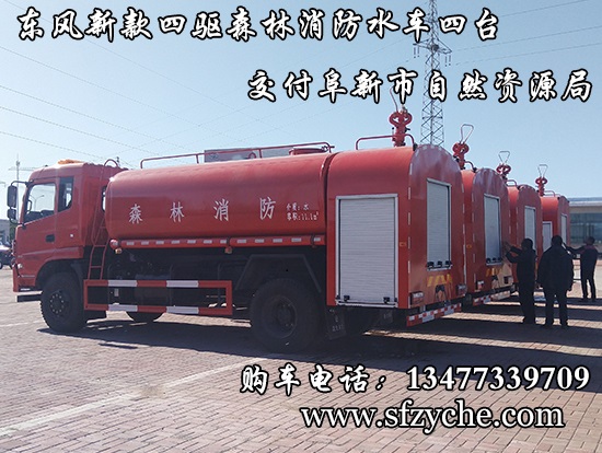 遼寧省阜新市自然資源局下屬的林業(yè)和草原局森林防火辦公室采購的東風(fēng)新款四驅(qū)森林消防水罐車具體參數(shù):東風(fēng)四驅(qū)越野森林消防水罐車_東風(fēng)11.1噸四驅(qū)消防水車_國五四驅(qū)越野森林滅火水車_東風(fēng)4×4越野SCS5183GPSEQ型四驅(qū)綠化噴灑車簡(jiǎn)介:采用東風(fēng)EQ2180GD5DJ型越野汽車底盤,東風(fēng)153寬體駕駛室(選裝D913新款駕駛室),4×4驅(qū)動(dòng),康明斯ISB190 50國五發(fā)動(dòng)機(jī),六檔變速箱,東風(fēng)商用車橋,前驅(qū)動(dòng)橋3.8噸,后橋10噸,10.00R20輪胎,軸距4500mm,電動(dòng)玻璃,方向助力,斷氣剎,ABS。罐體采用優(yōu)質(zhì)碳鋼Q235板材,板材厚度4mm,罐體容積11.1立方,安裝夾心取力器,后置泵箱,消防栓接口左右各一個(gè),消防炮采用PS30-50D消防水炮,流量40L/S/1.0MPa 水射程:≥50m,消防泵采用常壓消防泵型號(hào):CB10/40車用消防泵,流量:40L/s,壓力:1.0MPa,駕駛室頂部安裝長條警燈帶喊話器,全車顏色橘紅,兩側(cè)噴涂白色森林消防字樣。