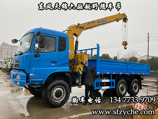東風(fēng)天錦六驅(qū)隨車(chē)吊詳細(xì)參數(shù)配置:東風(fēng)天錦D530一排半駕駛室?guī)Э照{(diào),6×6驅(qū)動(dòng),康明斯ISDe270 30,國(guó)三排放標(biāo)準(zhǔn)發(fā)動(dòng)機(jī),法士特8JS118變速箱,ZQC1200(機(jī)械式)分動(dòng)箱,前橋6噸,10噸雙后橋,大江車(chē)橋輪邊減速,12.5R20越野輪胎帶備胎,軸距4100+1300mm,大梁280mm,電動(dòng)玻璃,方向助力,斷氣剎,大箱尺寸5000×2400×600mm,底板采用4mm花紋板,采用徐工原廠5噸3節(jié)臂隨車(chē)起重運(yùn)輸機(jī)。