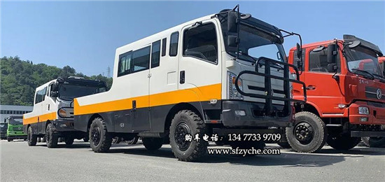 出口專供東風(fēng)全時(shí)四驅(qū)越野工程車全時(shí)四驅(qū)半承載式工程車,完美的將載人載貨的功能結(jié)合一起來。它,三段式設(shè)計(jì):駕駛室,乘客區(qū)(10人容量),貨倉(載重2.5T)。