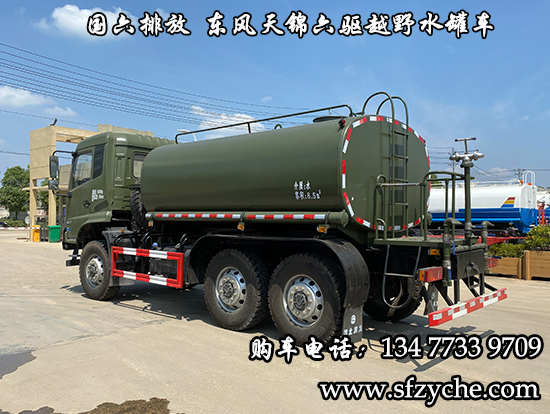 國六排放潤知星牌SCS5165GPSDFV6型六驅越野綠化噴灑車_東風天錦六驅森林消防水罐車_六驅園林綠化灑水車主要用于城鄉(xiāng)園林綠化灑水,噴藥等;主要裝置為水罐及泵.隨底盤選裝駕駛室.罐體有效容積8.7立方米.罐體外形尺寸(長×長軸×短軸)(mm) 4200×2350×1300.側、后防護材料為Q235B,側、后防護與車架焊接連接.后部防護裝置斷面尺寸(寬×高)50×120(mm),后部防護離地高度:460mm.ABS型號/生產廠家:3631010-C2000/東科克諾爾商用車制動系統(tǒng)(十堰)有限公司。東風天錦六驅越野綠化灑水車上裝配置:罐體采用優(yōu)質碳鋼QB235板材,板材厚度4mm,罐體容積8.7立方,安裝取力器,60-90威龍大功率水泵可泵進泵出,后置工作平臺帶水炮射程25米,消防栓接口左右各一個,選裝駕駛室頂部安裝長條警燈帶喊話器,全車顏色軍綠,兩側噴涂白色森林消防字樣等。