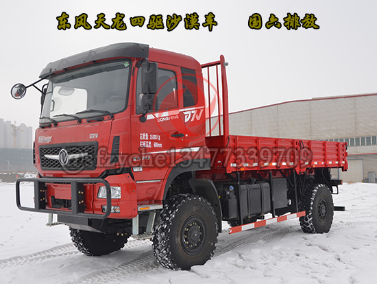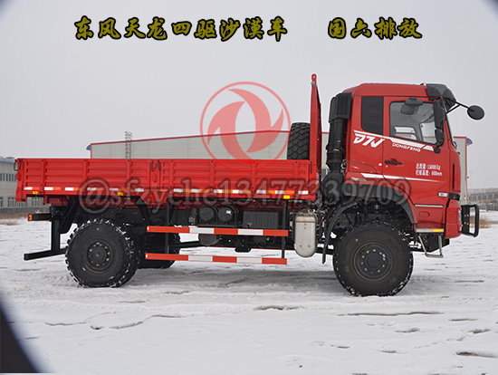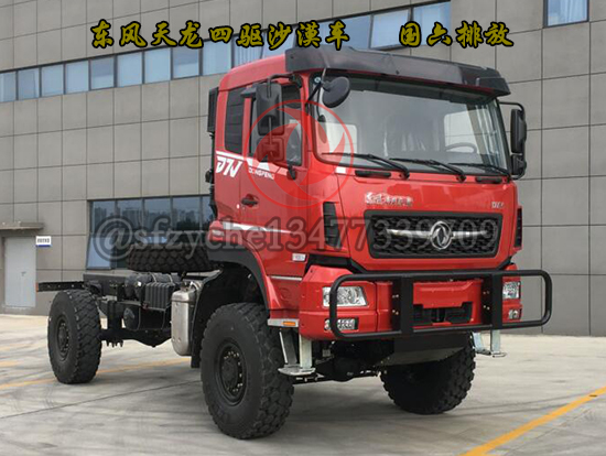 全新國六東風(fēng)四驅(qū)六驅(qū)沙豹沙漠車為特殊行業(yè)精心打造,適合全地形無路區(qū)域的全時4×4、6×6驅(qū)動車型,選用康明斯9升國六發(fā)動機(jī),動力涵蓋340---400馬力,動力強(qiáng)勁、性能可靠,采用7噸及10噸級雙級輪減前、后橋,離地間隙大、通過性好,前、中后橋配備輪間、軸間差速鎖裝置可適應(yīng)極惡劣道路狀況下的通過要求,先進(jìn)的遠(yuǎn)距離電控氣動裝置可實現(xiàn)高、低檔及前橋鎖止功能的轉(zhuǎn)換,多管旋流式三級空濾進(jìn)氣系統(tǒng)可有效地阻止極細(xì)微的粉塵進(jìn)入發(fā)動機(jī),外接式中央充放氣裝置可同時或單獨快速調(diào)節(jié)輪胎氣壓,越野和沙漠輪胎的互換可使車輛通過性適合各種地形地貌,選裝前后液壓絞盤等裝置能使車輛在各種環(huán)境下保持良好的狀態(tài)及自救互救功能,沙漠車使用工況:用于無路地域的貨物運輸,適應(yīng)沙漠、浮土、戈壁、礫石、泥濘、山地、崎嶇、冰雪等路況。耐溫±45℃,可作為石油物探、地質(zhì)勘查、大地測量、文物考古、草原監(jiān)理、畜牧防疫、森林消防、邊境巡邏、沙漠旅游等行業(yè)用車,是改裝專業(yè)工程車如:地震儀器、爆破器材運輸、沙漠冷藏、沙漠隨車起重運輸、工程搶險、林業(yè)吊運、搶險救災(zāi)等車輛及越野房車的理想底盤。