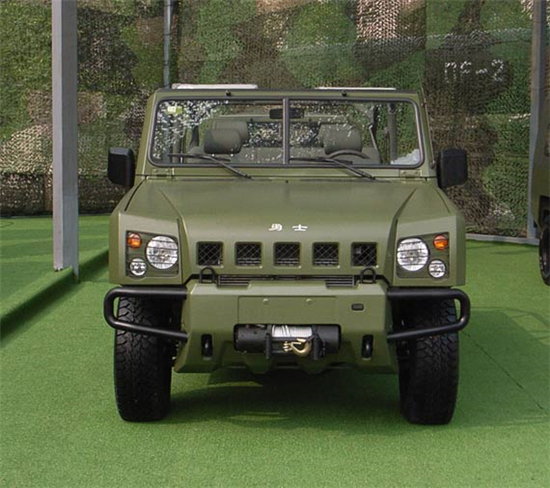2007年8月2日,北汽控股公司在位于北京市順義區(qū)的北京汽車制造廠有限公司隆重舉行慶祝建軍80周年暨北京·勇士下線儀式。北汽勇士BJ2022型4×4軍用越野車自2007年列裝部隊(duì)以來(lái),“勇士”越野車作為我軍第二代軍用指揮車,常年活躍在演訓(xùn)場(chǎng)上和邊防線上。2008年、2009年北汽勇士軍用車參加并圓滿完成汶川地震搶險(xiǎn),打擊暴恐勢(shì)力等多次重要軍事行動(dòng)!坝率俊笔怯杀本┢囍圃鞆S有限公司自主開發(fā)的,擁有完全自主知識(shí)產(chǎn)權(quán)的中國(guó)21世紀(jì)0.5噸/0.75噸級(jí)越野車!坝率俊蓖獠吭煨褪窃谘芯苛藲W、美、日三大流派越野車造型發(fā)展趨勢(shì)的基礎(chǔ)上,結(jié)合中國(guó)文化特色和中國(guó)越野車的特點(diǎn)而設(shè)計(jì)的,具有原創(chuàng)性。