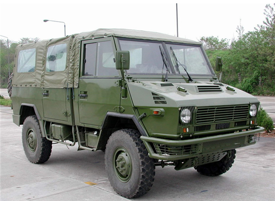 NJ2045軍用越野車屬我國(guó)二代軍車中的1.5噸級(jí),其原型車是意大利依維柯防務(wù)車輛分部生產(chǎn)的軍用40.10WM輕型支援車(4x4), 由躍進(jìn)汽車集團(tuán)公司(南京汽車制造廠)引進(jìn)意大利IVECO技術(shù)生產(chǎn);底盤、發(fā)動(dòng)機(jī)、變速器等采用意大利原裝進(jìn)口件,采用短頭型駕駛室,配備76kW渦輪增壓直噴柴油發(fā)動(dòng)機(jī),歐2排放標(biāo)準(zhǔn)。驅(qū)動(dòng)方式為 4×4,前后驅(qū)動(dòng)橋帶差速鎖、前盤后鼓式剎車系統(tǒng),主副油箱、強(qiáng)冷啟動(dòng)裝置。最大爬坡度不小于60度,最小轉(zhuǎn)彎直徑不大于12米,涉水深度不小于750毫米,越壕深度不小于650毫米。百公里油耗不大于13L,最高時(shí)速不小于100公里/小時(shí),自重3噸,載重1.5噸,分動(dòng)器采用了鏈條傳動(dòng)的型式,具有抗過載的能力。單桿操縱的博格-華納分動(dòng)器,高檔速比為1:1,低檔速比為1:2.74。南京產(chǎn)索菲姆8142.43型增壓中冷柴油機(jī)給這兩款車帶來(lái)源源不斷的動(dòng)力。87kW的最大功率產(chǎn)生于3600r/min,而1900r/min時(shí)就具備了269Nm的最大扭距。