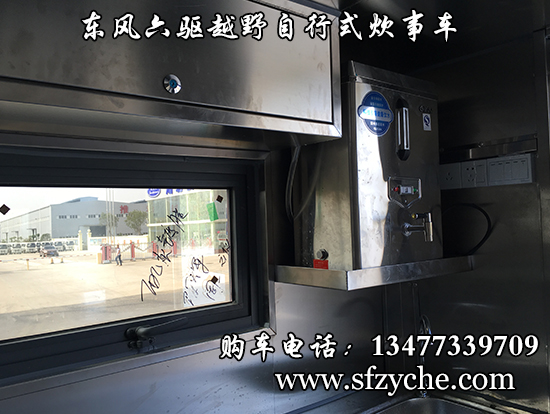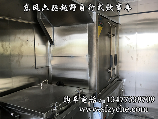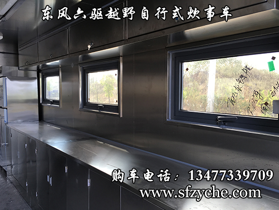 相關車型東風六驅越野自行式炊事車車輛概述:采用東風六驅越野底盤改裝, 車廂材質采用外冷軋鋼板,內飾不銹鋼,中間保溫層,隱藏式上車踏步,頂部安全窗,兩個高原副食灶,一個高原蒸飯車,抽油煙機,平冷柜,水路,電路,油路等。