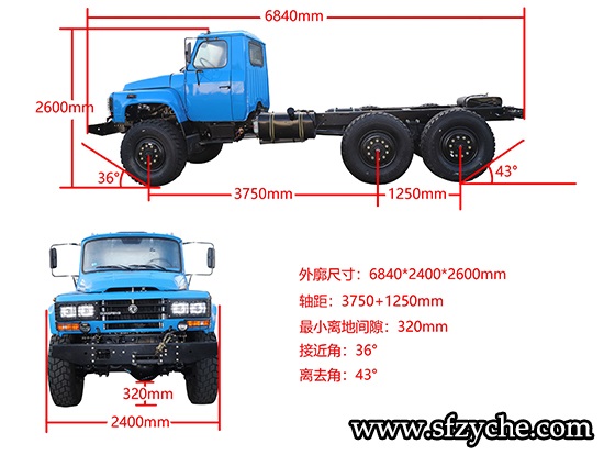 東風(fēng)尖頭六驅(qū)EQ245沙漠車(chē)配置: