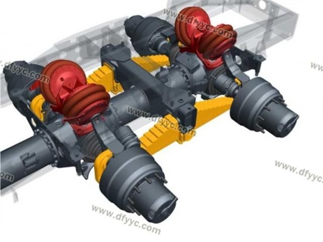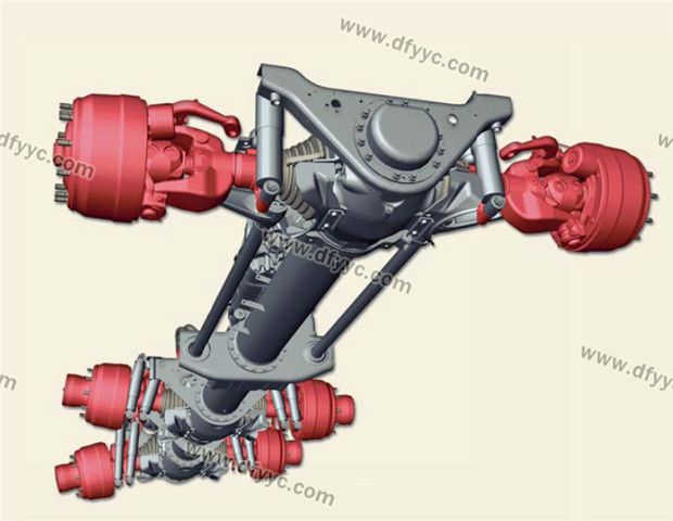 斷開式車橋是太脫拉另一與眾不同之處,這幫助太脫拉這樣的重型卡車實(shí)現(xiàn)了全輪獨(dú)立懸架,允許車輪有較大的跳動(dòng)空間,大大提高了整車在極端路況下的通過能力,尤其是通過臺(tái)階、壕溝、扭曲路的能力。太脫拉在空載的時(shí)候車輪是呈內(nèi)八字的大外傾角姿態(tài),行駛的時(shí)候只有輪胎的外側(cè)胎肩接觸地面,而滿載的時(shí)候卻是呈負(fù)外傾的姿態(tài),這因?yàn)槠鋽嚅_式車橋?qū)嶋H上是單橫擺臂的結(jié)構(gòu)所造成的,只要使用特制的輪胎,其輪胎磨損情況可以有效的改善。