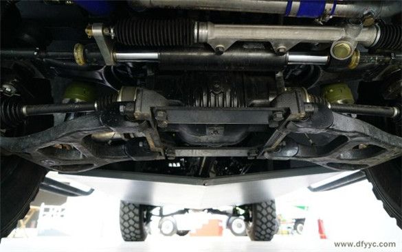 東風(fēng)四驅(qū)裝甲防雷反恐戰(zhàn)車的四驅(qū)系統(tǒng)全部國(guó)產(chǎn)化并非一步到位,經(jīng)過1代猛士基型車、標(biāo)準(zhǔn)2代猛士裝甲車、長(zhǎng)軸距2代猛士裝甲車近10年的發(fā)展積累而來。而這種通過引進(jìn)技術(shù)、分布國(guó)產(chǎn)、吸收改進(jìn),到全部國(guó)產(chǎn)化并掌握知識(shí)產(chǎn)權(quán)的發(fā)展模式,已經(jīng)成為包括東風(fēng)特種汽車在內(nèi)多家軍裝企業(yè)的生產(chǎn)模式。在一個(gè)較高的起點(diǎn)上,用更短時(shí)間研發(fā)全新裝備,已經(jīng)脫離單純的購(gòu)買、組裝的非可持續(xù)發(fā)展模式。 上圖是東風(fēng)四驅(qū)裝甲防雷反恐戰(zhàn)車底盤特寫。 東風(fēng)四驅(qū)裝甲防雷反恐戰(zhàn)車采用實(shí)時(shí)四驅(qū)系統(tǒng),包括前后差速器以及分動(dòng)器和控制系統(tǒng)全部國(guó)產(chǎn)化。帶有自動(dòng)調(diào)節(jié)輪胎壓力的系統(tǒng),具備5萬(wàn)公里行駛無(wú)故障能力。為了提升東風(fēng)四驅(qū)裝甲防雷反恐戰(zhàn)車通過性,加裝了中央差速鎖。
